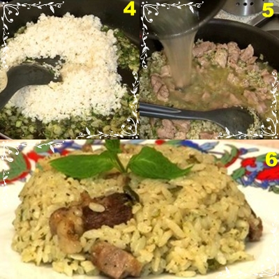 - Pilav tenceresinin içine ince doğranmış kuru soğan, yeşil soğan ve naneyi ekleyin.