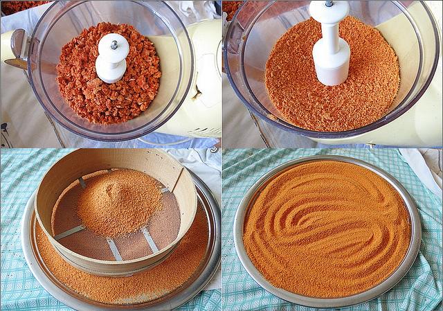 Her kuruduğunda parçaları daha küçük parçalara bölün, bu parçalar da kuruduğunda artık elinizle ovalamaya başlayın.
